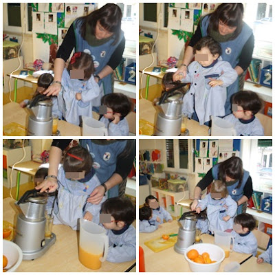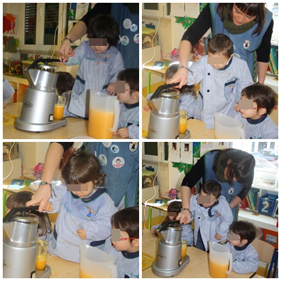 Depois de sabermos tudo fizemos um sumo de laranja bem docinho e ainda partilhamos com os meninos da sala da Mónica.