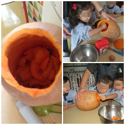 Ora pusemos mãos à obra e na sexta-feira, dia de cultura alimentar fizemos uma bela tarte de abóbora.